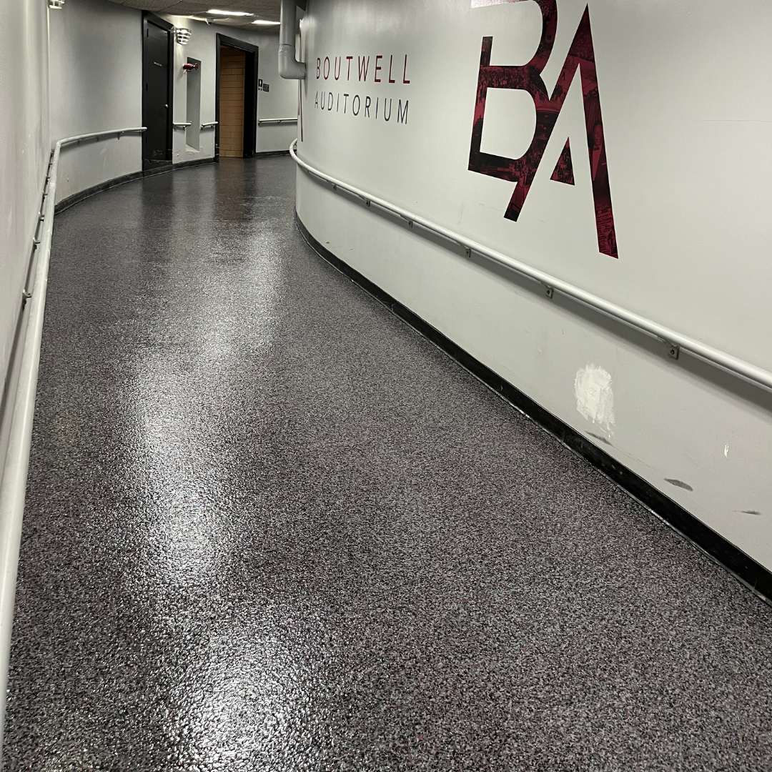 Flake flooring systems combine durability with decorative flair. We offer a variety of color combinations and flake sizes to create unique, slip-resistant surfaces perfect for retail spaces, showrooms, and commercial kitchens.